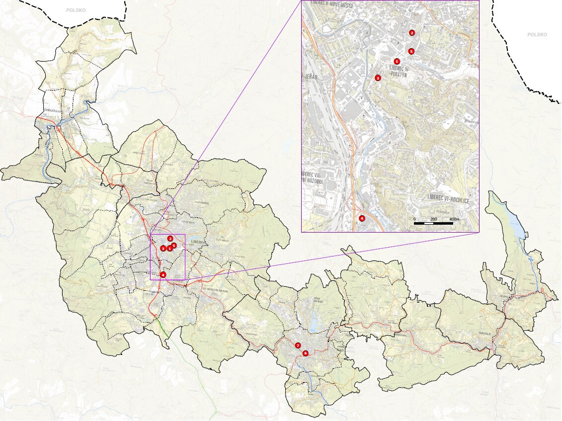 Vymezení kritických oblastí (tzv. hotspots) v aglomeraci Liberec je znázorněno na následujícím obrázku.